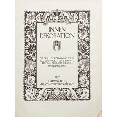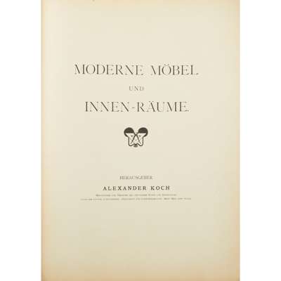 each hardback bound, edited by Alexander Koch and comprising 1894; 1899; 1900; 1901 1903; 1904; 1905; 1907; 1913; 1917; 1919; 1930, to include articles on M. H. Baillie Scott and C. R. Ashbee; and ONE YEARBOOK OF MODERNE MÖBEL UND INNENRÄUME, hardback bound, edited by Alexander Koch, 1899