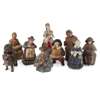 modelled as character figures, comprising an OLD LADY, in a blue dress, with impressed marks ‘BB/ 126’, 25cm high; a GIRL WITH A MUFF, with impressed marks ‘BB/ 400’, 25cm high; a CAVALIER, with impressed marks ‘BB/ 149’, 25cm high; a MAN IN A 'FUR'-LINED COAT, with impressed marks ‘BB/ (XX)/ 8203, 21cm high; a BEARDED MAN wearing a beret, with impressed marks ‘Austria/ 850/ 6’, 31.5cm high; a VICTORIAN LADY holding a fan, with impressed marks ‘Moynet à Vendeuvre’, 31.5cm high; a VEGETABLE SELLER, with impressed marks ‘BU/ 519/ P’, 28cm high; a LADY WITH SNUFF, the base reading ‘ECHT SCHMALZLER’, otherwise unmarked, 26cm high; and a BOY RIDING A DOG, unmarked, 24cm high