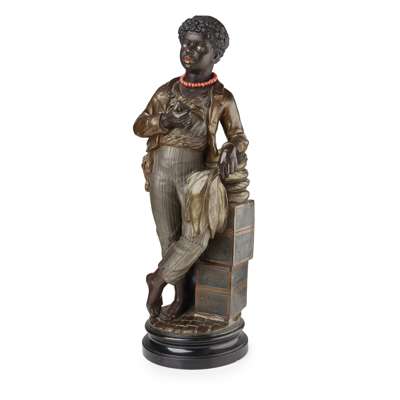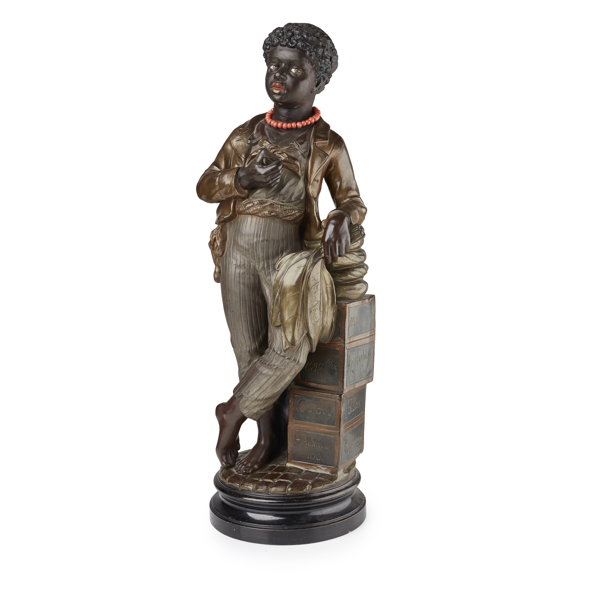 the figure modelled leaning on cigar boxes incised 'HABANA REGALIA FIN CUBA HABANA', and with impressed marks 'U&C 791/'GES/'TRUT2T'