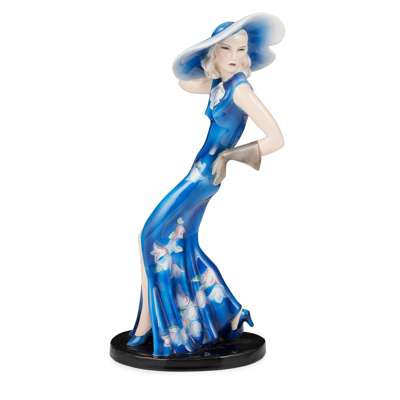 modelled in a blue dress and large hat, printed and incised maker's marks GOLDSCHEIDER/ WIEN/ MADE IN AUSTRIA/ 7279/ 32/ 16
