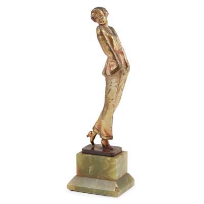 patinated bronze raised on a green onyx base, signed in the bronze LORENZL/ AUSTRIA