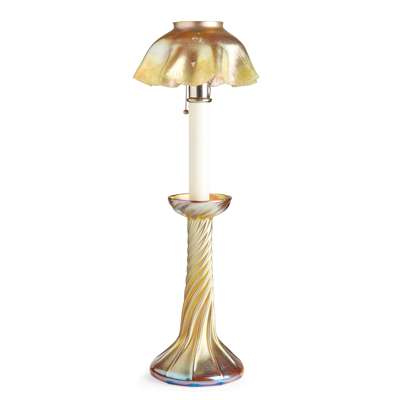 IRIDESCENT 'FAVRILE' GLASS CANDLE LAMP & SHADE, CIRCA 1910