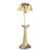 the lamp of tapering form with raised spiral decoration, with associated and later candle support and with original frilled glass shade, shade with etched maker's mark LCT 5-12281