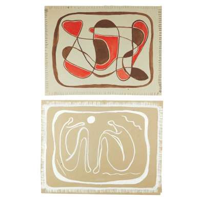 Apart from an exhibition at the Redfern Gallery in 1986, showing six of the mats, and a fuller exhibition of the mats in 2006 organised by the Belgrave Gallery, St. Ives in conjunction with Margaret Howell, London, these works have been largely unknown. This collection, from an important St. Ives artist’s estate, includes a number of original designs, and represents an important moment in the St. Ives artistic movement; a rare and unique collaboration of artists associated with St. Ives in the Post-War years.