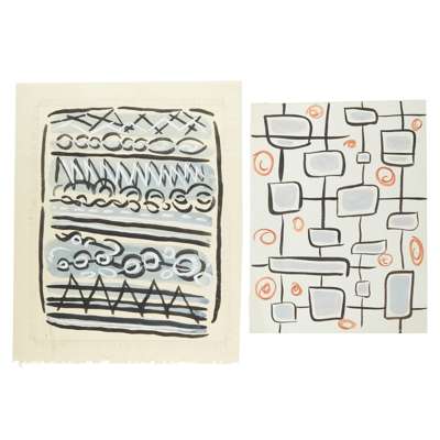 comprising SIXTEEN DESIGNS, watercolour, unframed, pencil and gouache, some with inscriptions in ballpoint pen and pencil