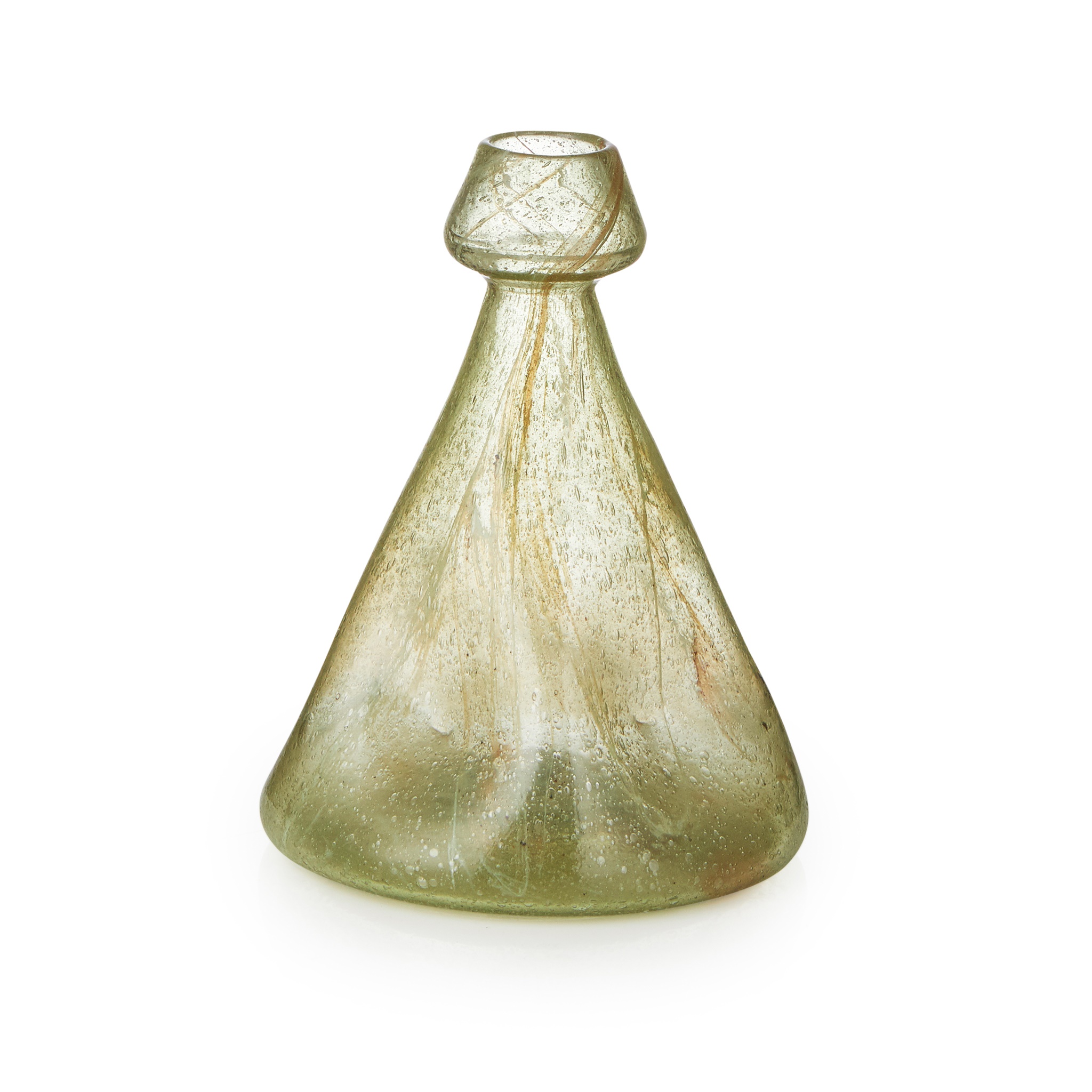 with tapered and dimpled body, the green glass body with aventurine and milky trailed inclusions