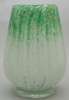of tapering cylindrical form, the body with vertical bands of white, green and bubble inclusions, the rim with aventurine inclusions, applied foot
