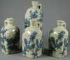 two with applied thistle decoration and two with applied juniper decoration, in blue, title on the labels, 'Gin', 'Scotch Whisky', 'Irish Whisky' and 'Brandy', impressed mark for Edith Harrington and dated 1881 (4)
