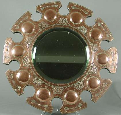 A Celtic revival copper wall mirror