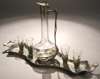 comprising a pewter mounted bottle-shaped decanter, cut with sinuous tendrils, 22cm high, a set of four tapering glasses, and a shaped twin handled tray, stamped marks (6)
