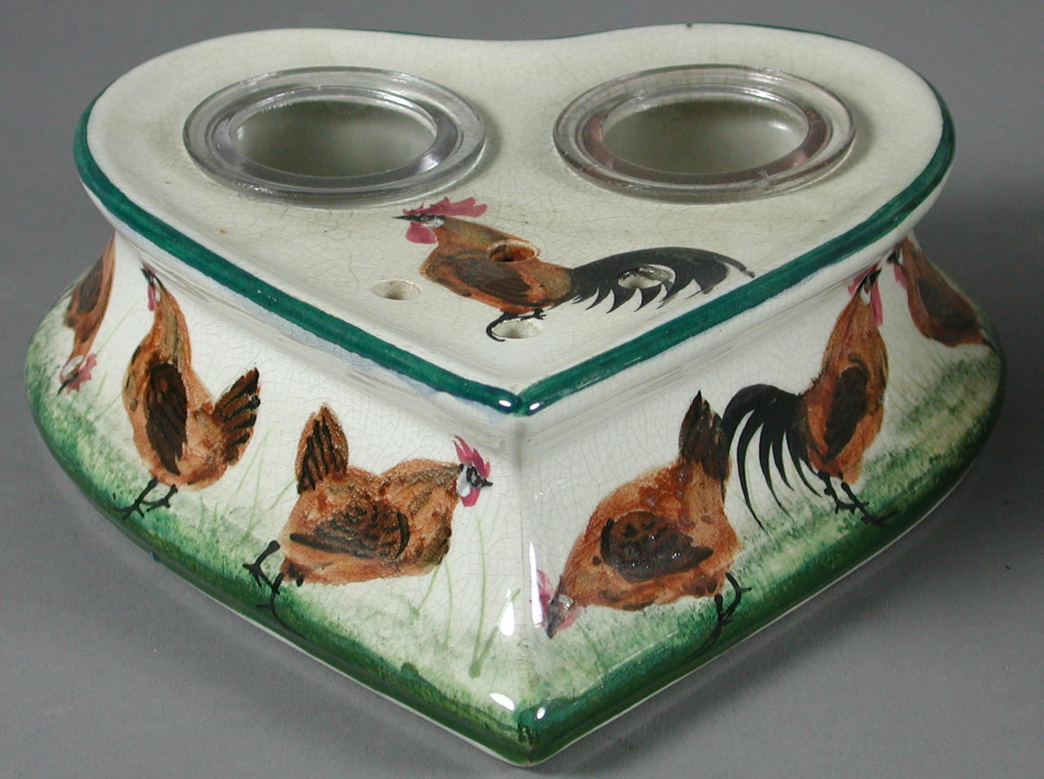 "Cock and Hens", a Wemyss heart shaped inkwell †