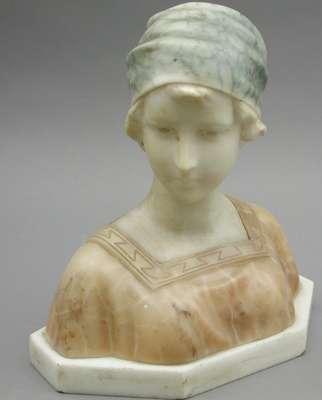 of a young woman, wearing a scarf in her hair, signed A. Aurili