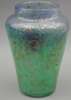 of shouldered cylindrical form, the mottled green ground graduated to blue at the rim and with allover aventurine inclusions