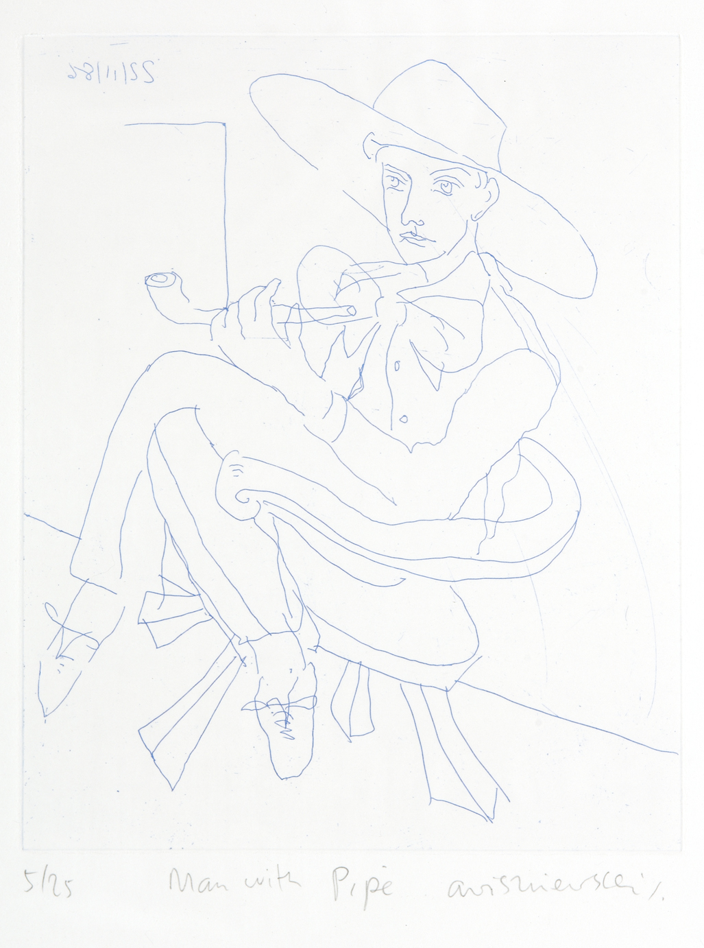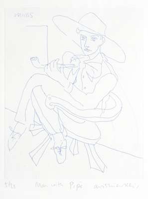 Plate size: 25cm x 20cm (10in x 8in) and another two by the same hand, Man with Pipe, Untitled (3)