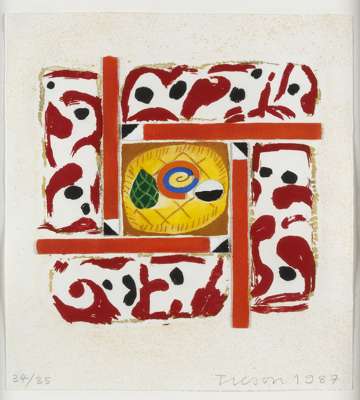 Soft ground aquatint, sand and acrylic, signed and dated 1987, numbered 34/35, published by Waddington Graphics, London