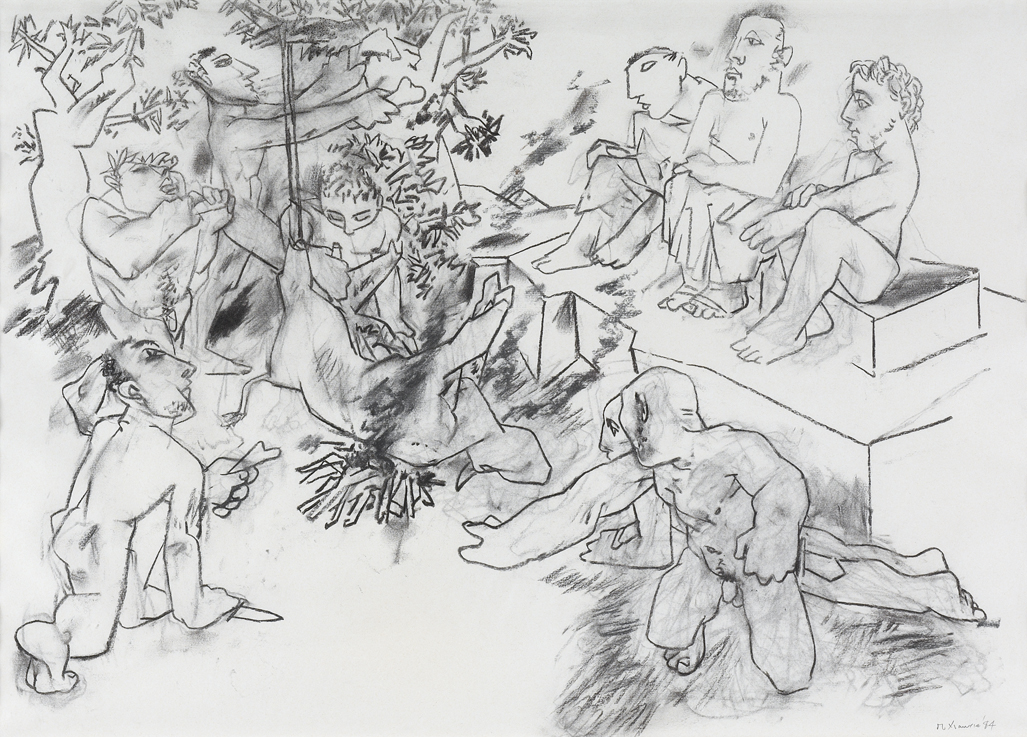 Signed and dated 1994, charcoal on paper