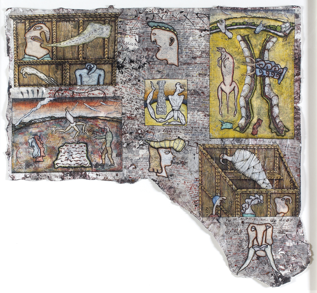 Ink, crayon and acrylic on paper, dated 1995