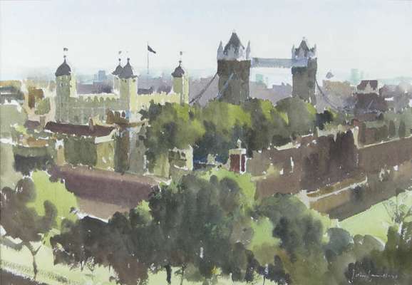 33cm x 48cm (13in x 18.75in) and another three by the same hand, ‘Ludgate Hill’, ‘The Tower of London’ and ‘St Paul’s (4)