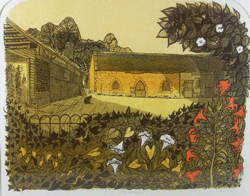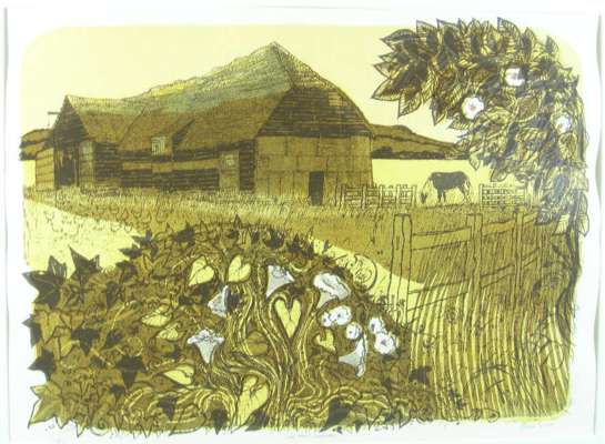 Plate size: 46cm x 63cm (18in x 25in) and another two by the same hand ‘Tithe, Barn and Lilies’, ‘Tithe Barn and Flowers’ (3)