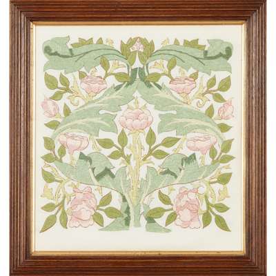 'ROSE BUSH' EMBROIDERED PANEL, CIRCA 1890