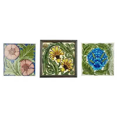 glazed earthenware, impressed Merton Abbey mark; together with a 'KL ROSE' 6-INCH TILE, glazed earthenware, impressed mark DM/98; and a further WILLIAM DE MORGAN 6-INCH TILE, later framed