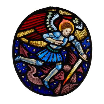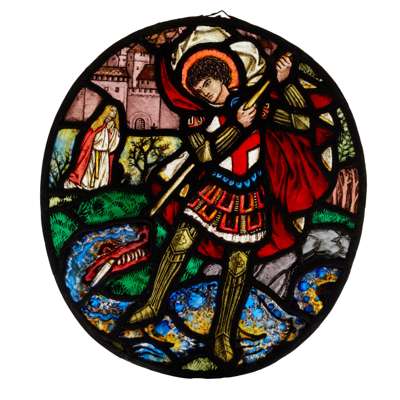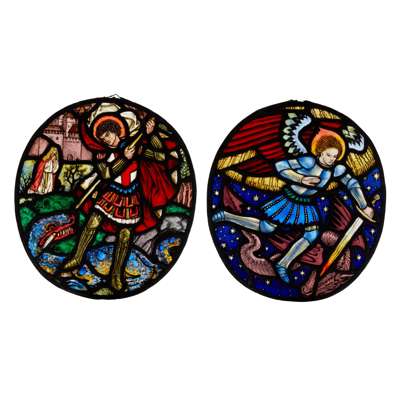 'ST. GEORGE' AND 'ST. MICHAEL': A PAIR OF ARTS & CRAFTS PANELS, CIRCA 1900