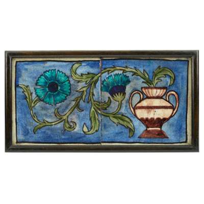 'FLOWERS & VASE' FRAMED TWO-TILE PANEL, CIRCA 1880