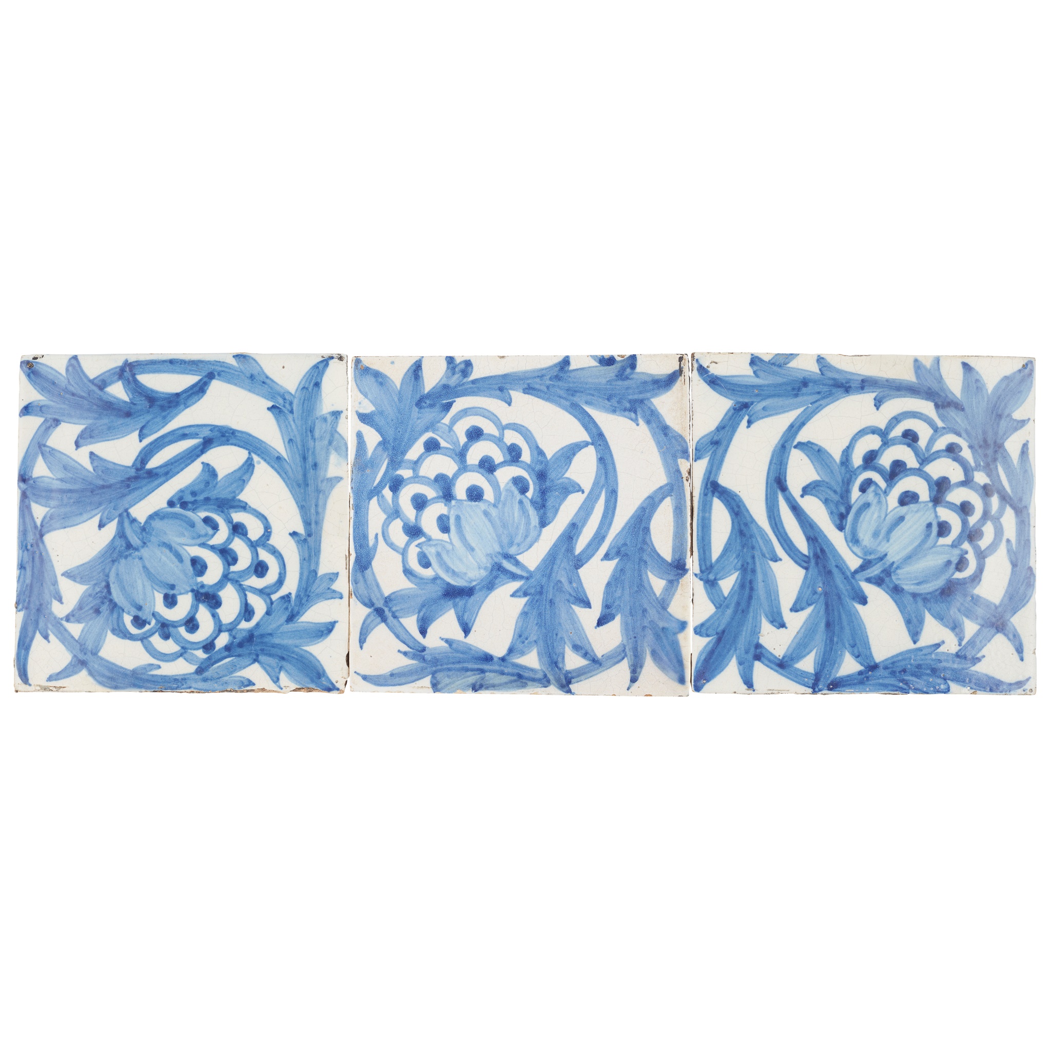 THREE RARE 'BLUE ARTICHOKE' WALL TILES, CIRCA 1880