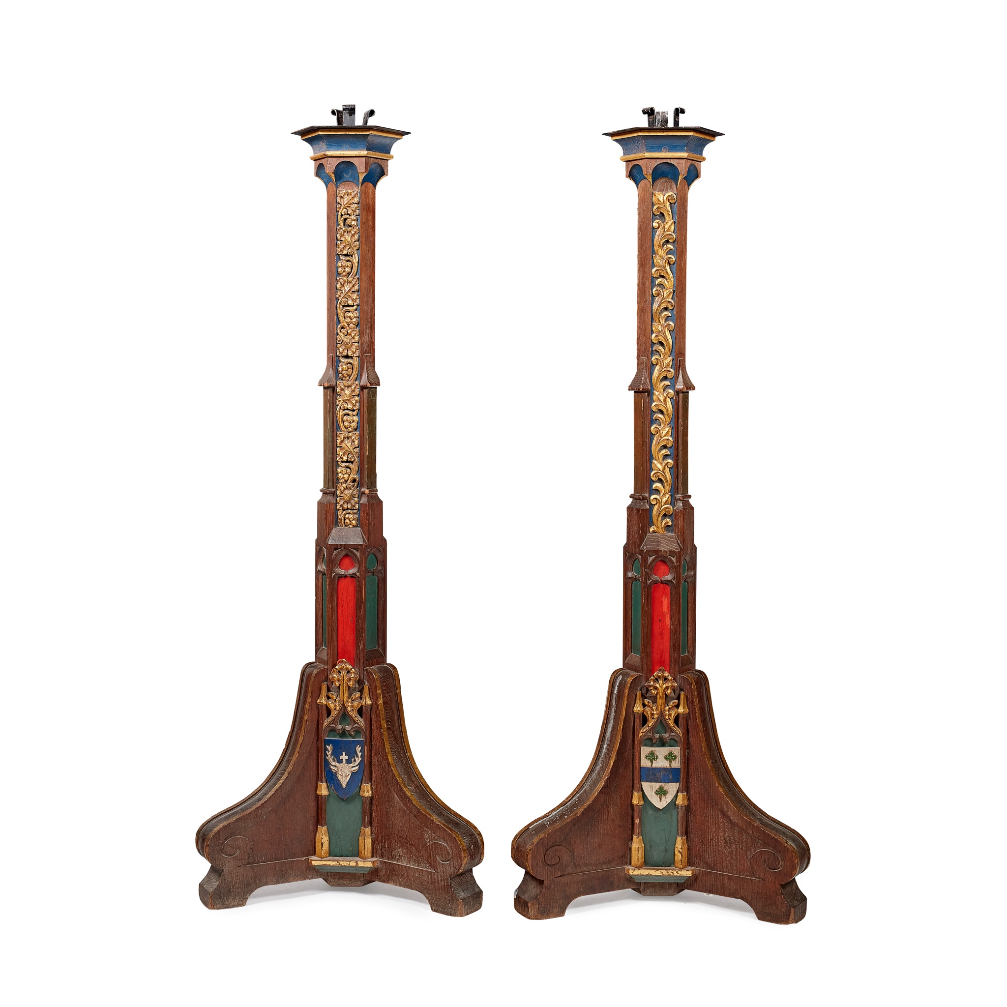 PAIR OF GOTHIC REVIVAL ALTAR CANDLESTICKS, CIRCA 1900