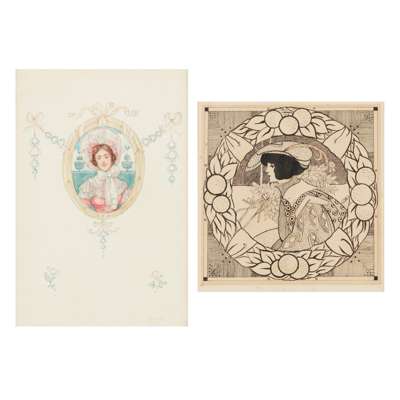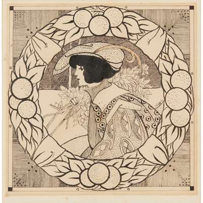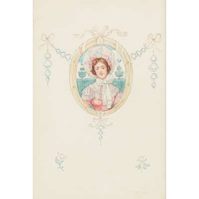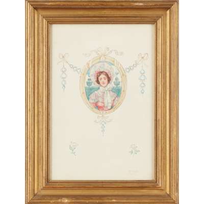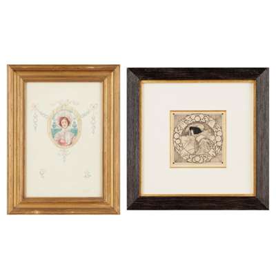 watercolour highlighted with gilt, signed and dated lower right W.J. NEATBY 1906, bears artist’s label and inscription verso, 24.5cm x 16.5cm; together with BRITISH SCHOOL, THE KNAVE OF DIAMONDS, pen and ink, signed and dated with initials W.S.G.N. ‘13, 10cm x 10cm
