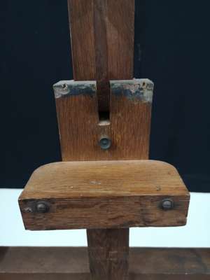 stained beech and pine with central wooden screw adjuster; together with a further ARTIST'S EASEL, oak
