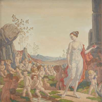 tempera on canvas, signed and dated lower right HARRY MORLEY 1918