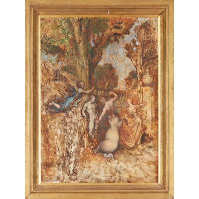 Note: Having initially established himself as a portraitist, Victor Hume Moody later enrolled at the Royal College of Art in London, and it was here, under the influence of William Rothenstein, that his career as an artist profoundly changed. Rothenstein encouraged him to focus on Classical themes and compositions, and Moody remained faithful to this throughout his career, using techniques from the Italian Renaissance as his source. His strong sense of form and a more sensual approach to figurative painting earned him critical acclaim and his works were widely exhibited across the UK. His fascination with the classical world had a lasting effect on his daughter Catherine, yet while her father tended to experiment with a variety of techniques such as tempera and gesso, Catherine’s works are predominantly executed in oil and pastel. She followed in her father’s footsteps later in life too, taking over his 27-year tenure as headmaster of the Malvern School of Art in 1962. Despite the growing popularity of Abstract and Conceptual art, she remained a passionate advocate of the arts and sought to keep the tradition of figurative painting alive, leaving a lasting legacy for the School and her students.