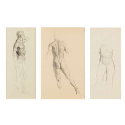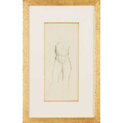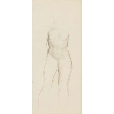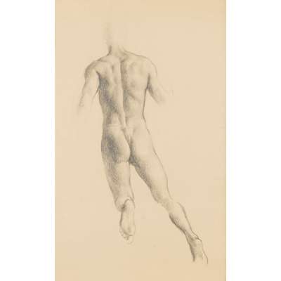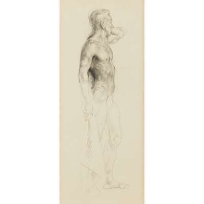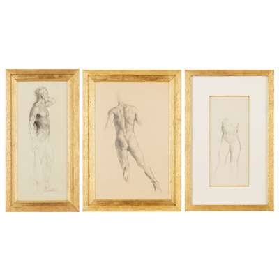 to include STUDY OF A RUNNING MAN, pencil, 45cm x 28cm; STUDY OF A STANDING MALE NUDE, charcoal, 48cm x 20cm; and STUDY OF A NAKED FEMALE TORSO, pencil, 29cm x 13cm