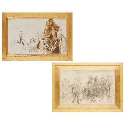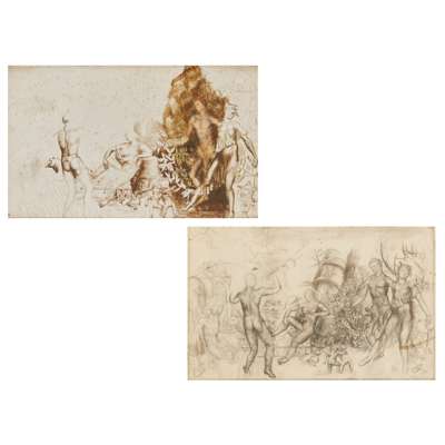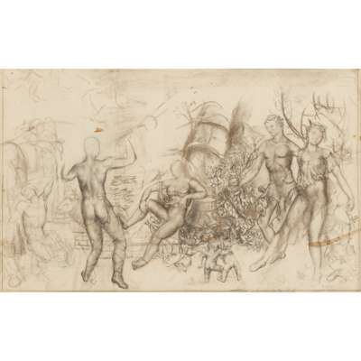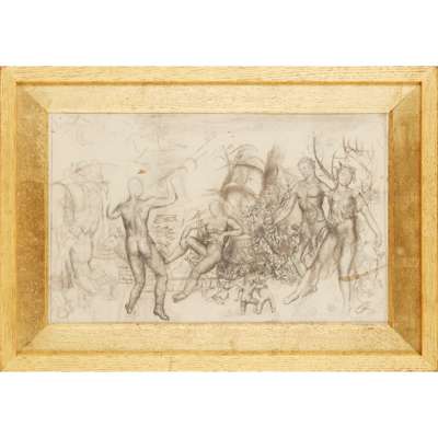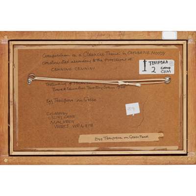egg tempera on gesso on panel, signed and inscribed on the reverse, 25cm x 41cm; together with COMPOSITION ON A CLASSICAL THEME – VENUS & ADONIS, BY VICTOR HUME MOODY, pencil and charcoal, 26cm x 42cm