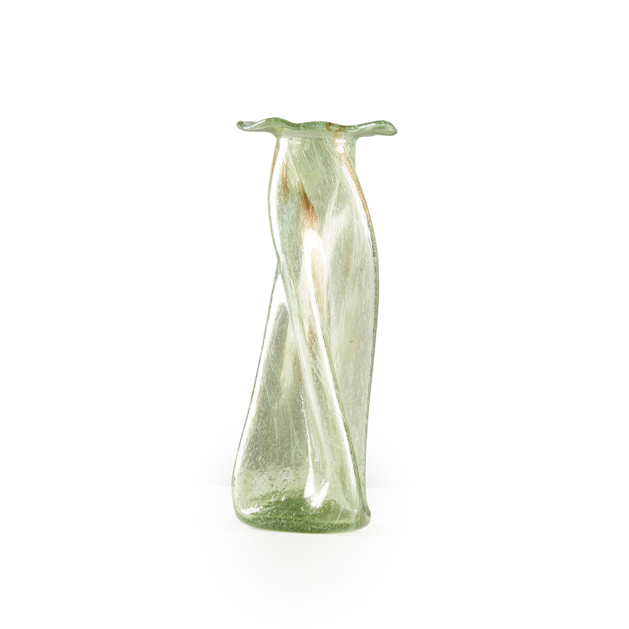 green glass with trailing milky and aventurine inclusions