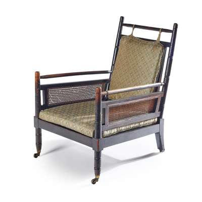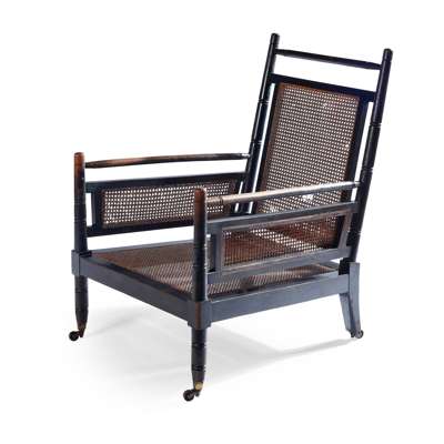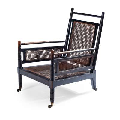 Note: An easy chair version of the wicker chair that Godwin designed for his own use in 1867, and later for Dromore Castle.