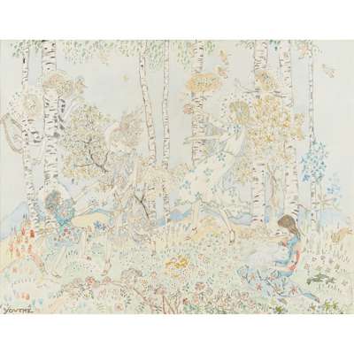 watercolour on vellum, signed lower right JESSIE M. KING, inscribed lower left YOUTHE
