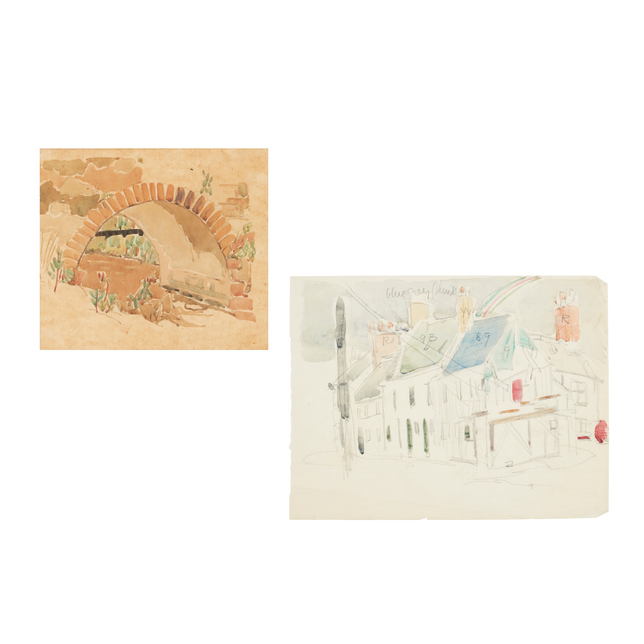 watercolour, unsigned 18.5cm x 21cm; together with SKETCH OF A HOUSE, watercolour and pencil, by the same hand, 18.5cm x 24.5cm