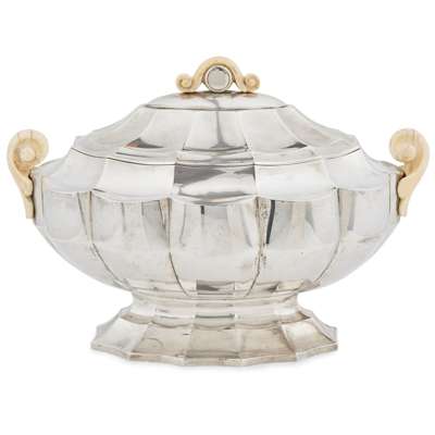 silver and ivory, stamped '800' with column cyphers, cover unmarked