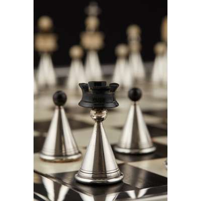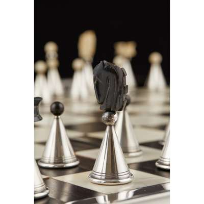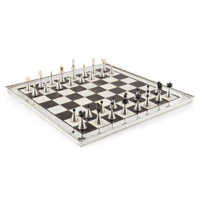 silver-plated metal, ivory, hardwood, comprising 32 boxed playing pieces and board, stamped marks to board