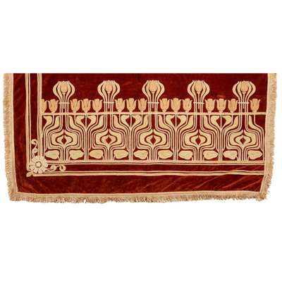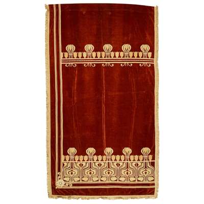 russet velvet panels with applied embroidery, lined and with fringed edges