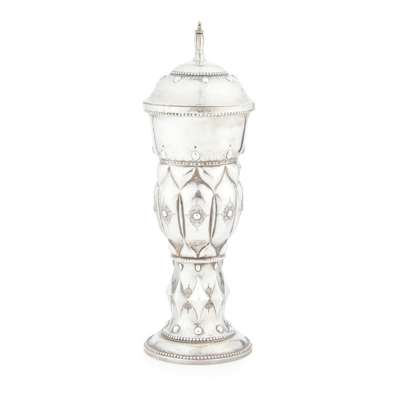 ARTS & CRAFTS WHITE METAL COVERED CUP, CIRCA 1900