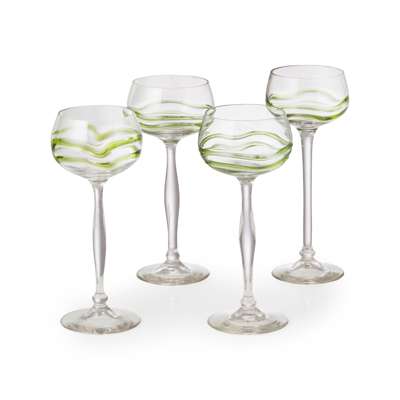 clear glass with green trailed decoration, three 19.8cm high, one 20.5cm high; together with FOUR THERESIENTHAL WINE GLASSES, clear and green glass, with gilt rims, 23.5cm high