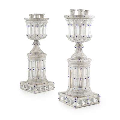 PAIR OF URNS/ CANDELABRA ON STANDS, CIRCA 1935