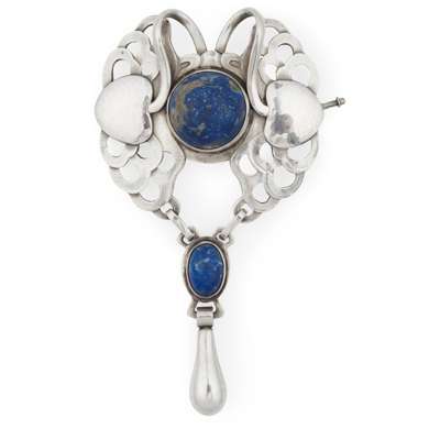 sterling silver, set with lapis lazuli cabochons, stamped maker's marks GEORG JENSEN/ 830/ 2