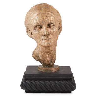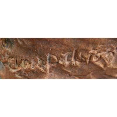 patinated bronze, raised on an ebonised base, indistinctly signed in the bronze