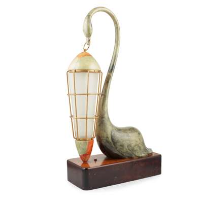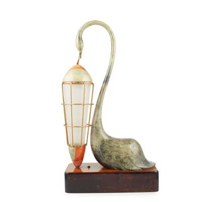 Note: Aldo Tura was one of Italy’s most prominent mid-century designers. His unique designs were typified by rich materials and highly-sculptural forms that featured more unusual and exotic materials such as eggshell, goatskin and parchment. A stylistic fusion of Art Deco and Modernism, Tura’s decorative works favoured the use of coloured and lacquered parchment, richly coloured with hues of red, green and yellow. Whilst many of his contemporaries turned towards industrial machinery and methods of mass-production, throughout his career Tura remained faithful to traditional hand-craftsmanship, choosing intricate forms and labour-intensive processes that celebrated the skill of both the designer and craftsman.