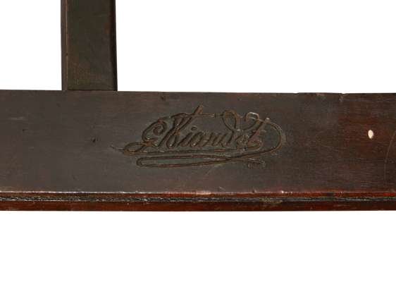 rosewood, with one hinged and one fixed side with relief carved panel, branded facsimile signature G. VIARDOT to the inside leg