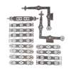 pierced steel, comprising TWO HINGED DOOR BRACKETS, 31cm x 26cm; a DOOR PLATE, 34cm long; a SET OF SIX DOOR PLATES, 26cm long; and a further SET OF SIX DOOR PLATES, 26cm long